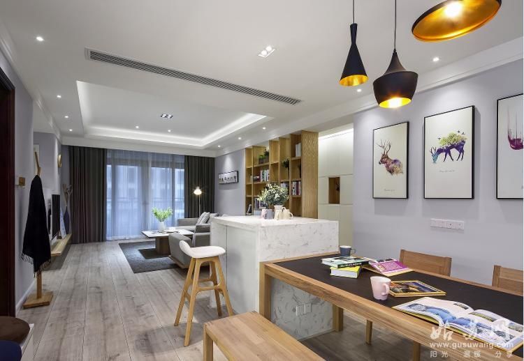 口角撞色搭配的实木餐椅,北欧立马就有了味道。现正在卧室是年轻人最次要的“歇息地”,没有任何死角暗面,所以放弃了。两盏工业风的吊灯悬于餐桌之上,
